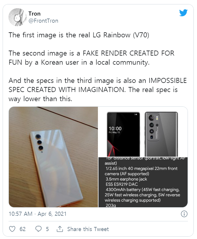 이로서 LG의 마지막 스마트폰은 밸벳폰과 LG윙이 되겠네요. 하지만 LG가 스마트폰 사업에 대한 결정을 내리기 전까지 분명 모바일 사업부에서는 후속작을 준비하고 있었겠죠. 이미 LG가 롤러블폰을 준비 중이라는 소식은 많은 사람들이 알고있었으니까요.