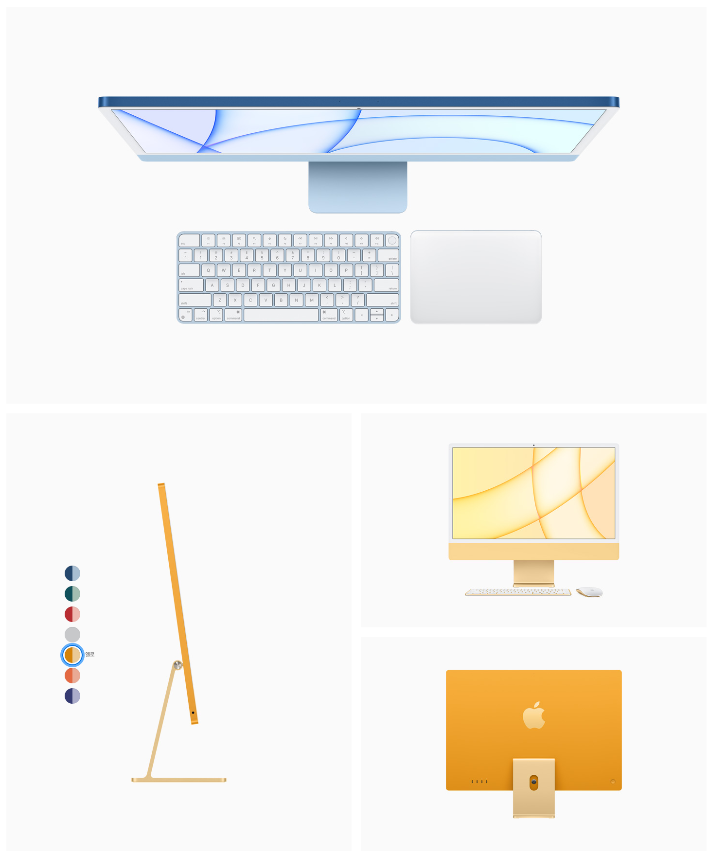 2021년 4월 애플 스프링 로디드 이벤트에서 오랜만에 등장한 신형 아이맥은 충격 그 자체였습니다. 맥북과 아이맥에서는 "실버" 아니면 "스페이스 그래이"만 고집오던 애플이 무슨 약을 먹었는지, 7가지 색상(블루, 그린, 핑크, 실버, 옐로, 오랜지, 퍼플)의 신형 아이맥을 가지고 나왔습니다. 그렇다면 이후 맥북 시리즈도 다양한 색상으로 만나볼 수 있다는 것이네요.