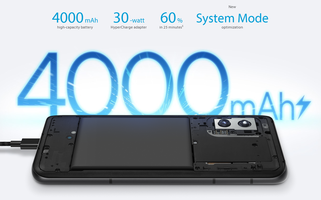 배터리는 4000mAh이고요. 30W 고속충전을 지원해서 25분이면 60% 충전됩니다.